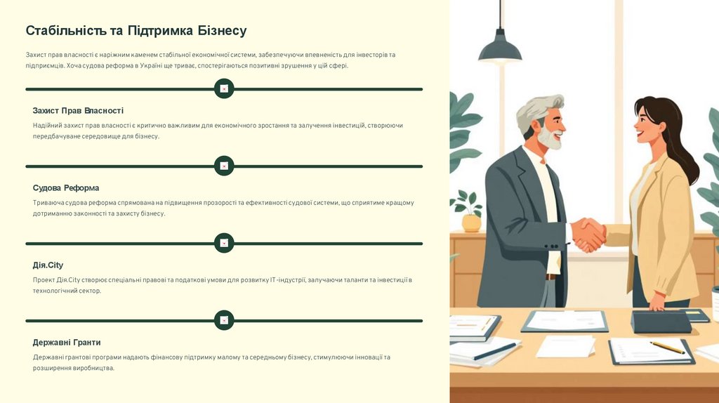 Стабільність та Підтримка БізнесуЗахист прав власності є наріжним каменем стабільної економічної системи, забезпечуючи впевненість для інвесторів та