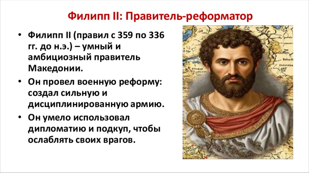 Филипп II: Правитель-реформатор• Филипп II (правил с 359 по 336