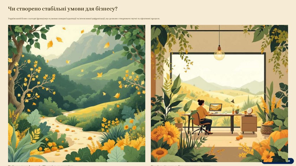 Чи створено стабільні умови для бізнесу?Український бізнес сьогодні функціонує в умовах швидкої адаптації та інтенсивної цифровізації, що дозволяє створювати гнучкі та ефективні процеси.