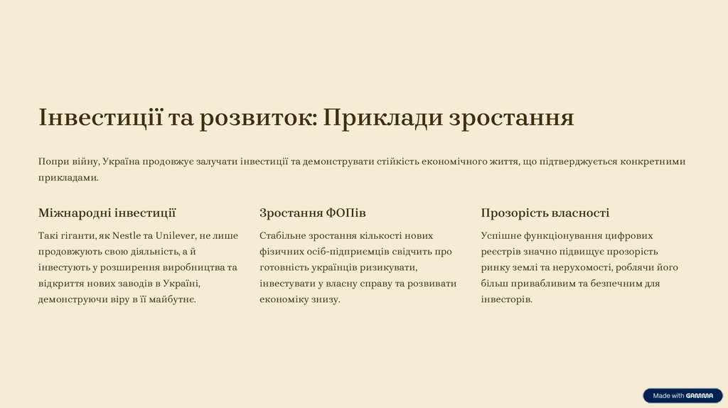 Інвестиції та розвиток: Приклади зростанняПопри війну, Україна продовжує залучати інвестиції та демонструвати стійкість економічного життя, що підтверджується конкретними