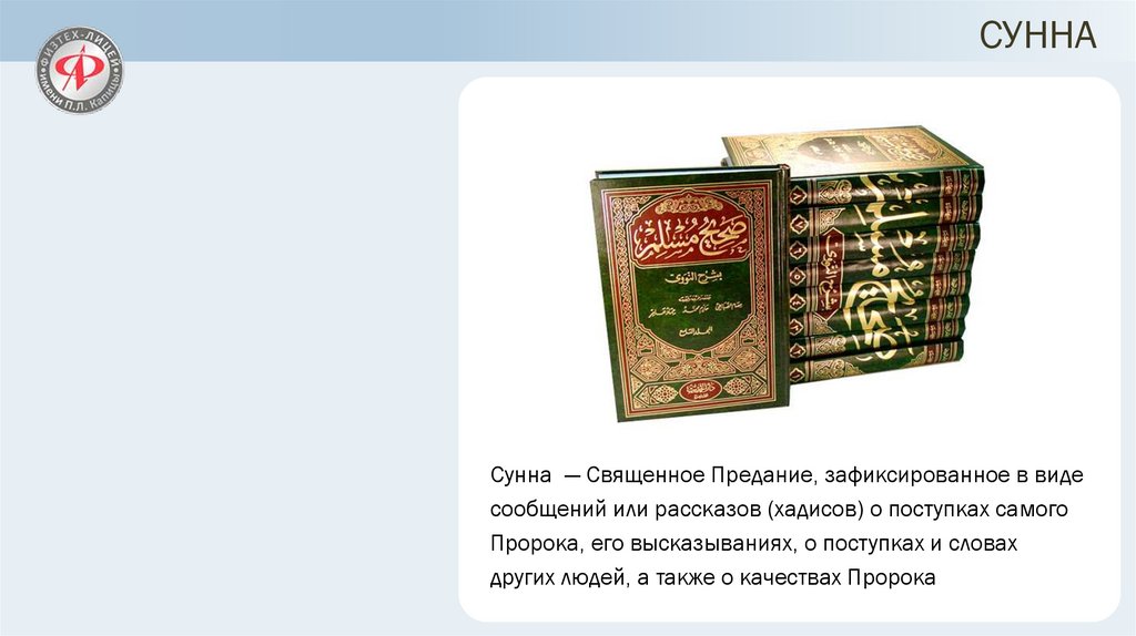 СУННАСунна — Священное Предание, зафиксированное в виде