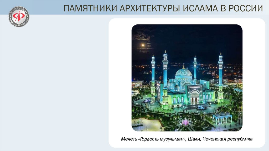 ПАМЯТНИКИ АРХИТЕКТУРЫ ИСЛАМА В РОССИИМечеть «Гордость мусульман», Шали, Чеченская республика