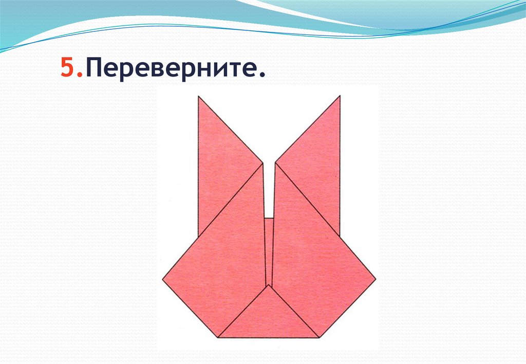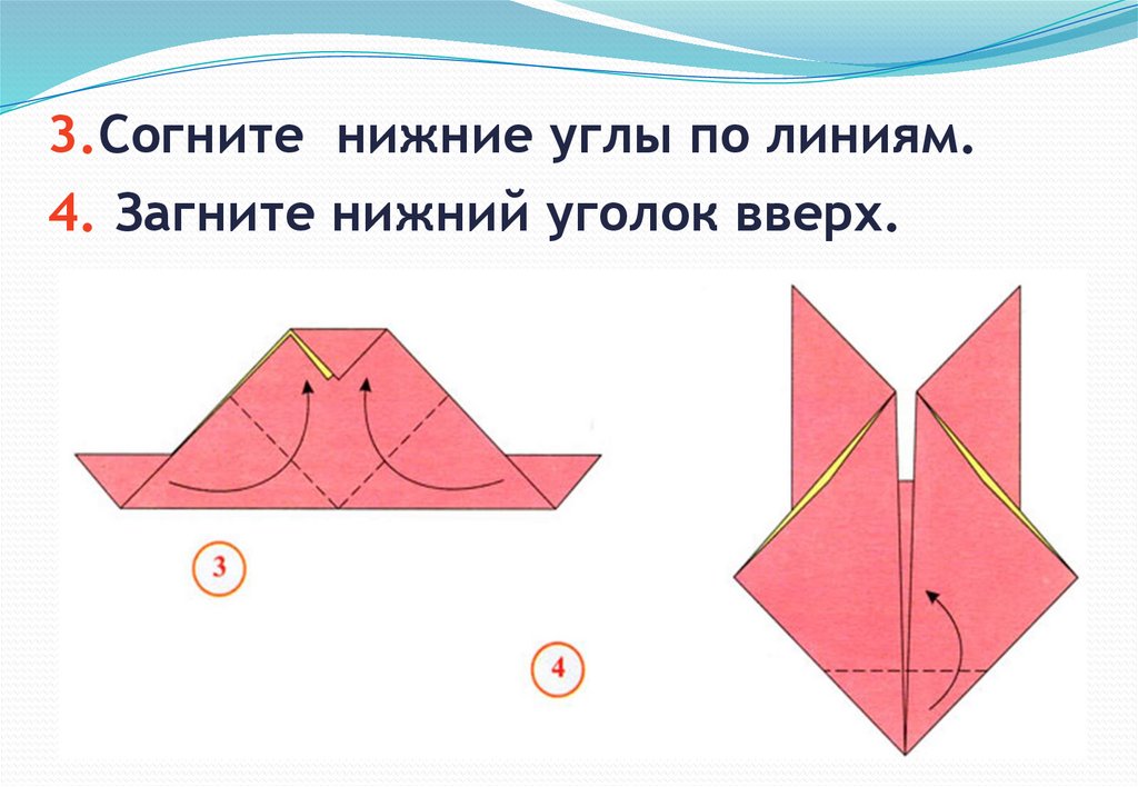 3.Согните нижние углы по линиям.4. Загните нижний уголок вверх.