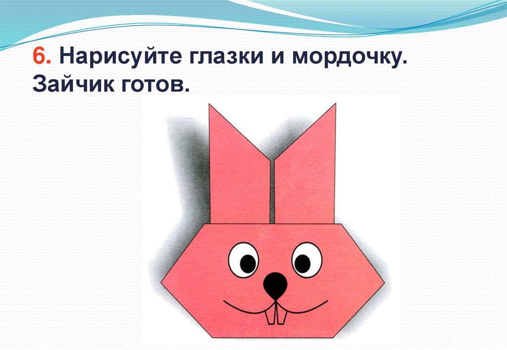 6. Нарисуйте глазки и мордочку.Зайчик готов.