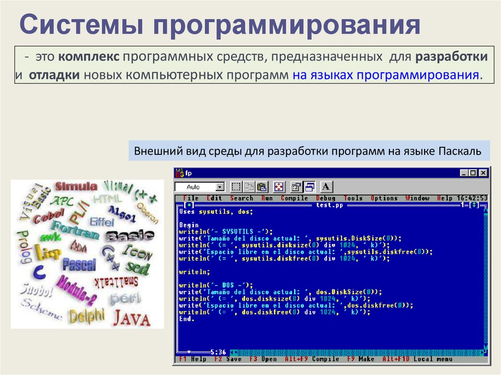 Системы программирования- это комплекс программных средств, предназначенных для разработки