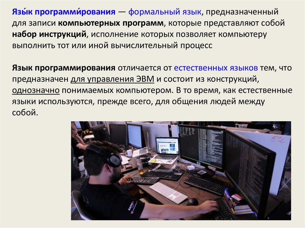 Язы́ к программи́ рования — формальный язык, предназначенныйдля записи компьютерных программ, которые представляют собой