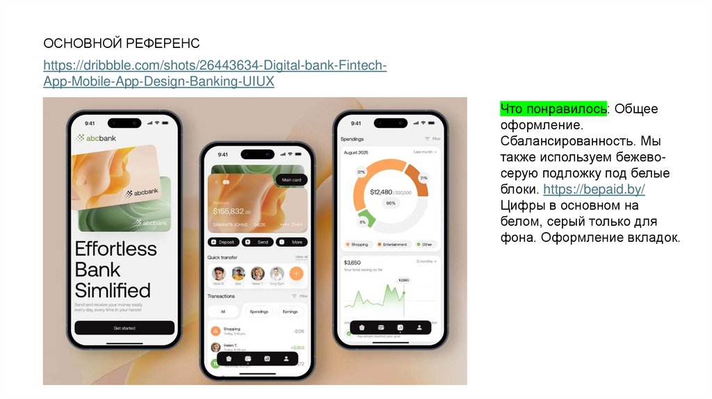 ОСНОВНОЙ РЕФЕРЕНСhttps://dribbble.com/shots/26443634-Digital-bank-FintechApp-Mobile-App-Design-Banking-UIUX