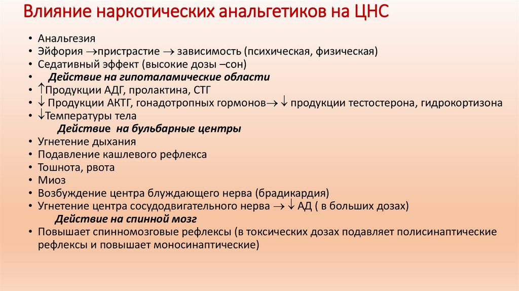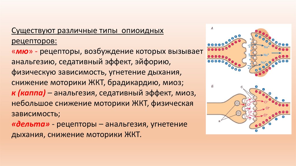 взаимодействуют с ОР. Опиоидные анальгетики угнетают ЦНС, что проявляется