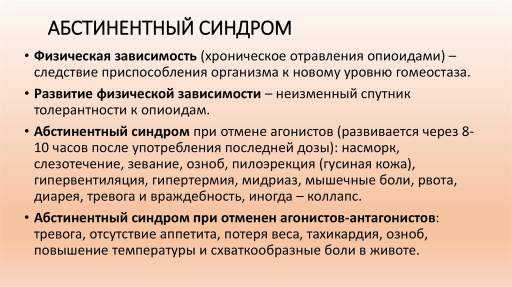 • Развитие абстиненции при отмене препарата у лиц с физической