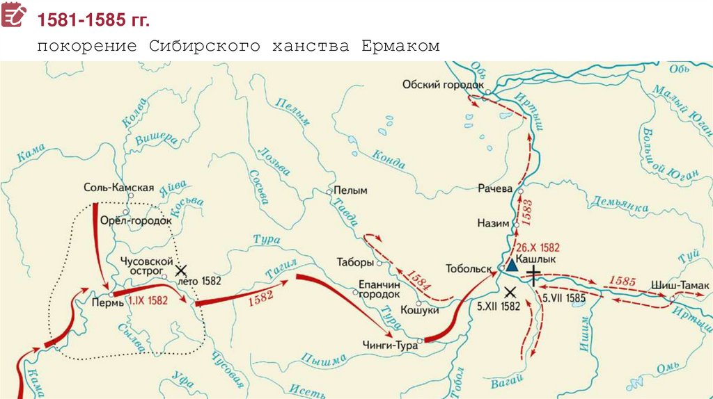 1581-1585 гг.покорение Сибирского ханства Ермаком