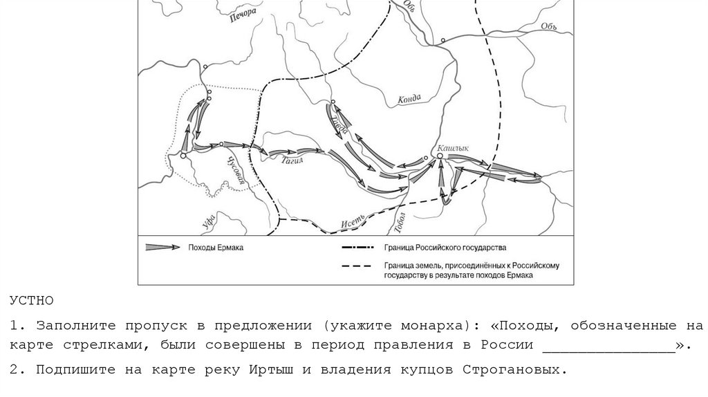 УСТНО1. Заполните пропуск в предложении (укажите монарха): «Походы, обозначенные на
