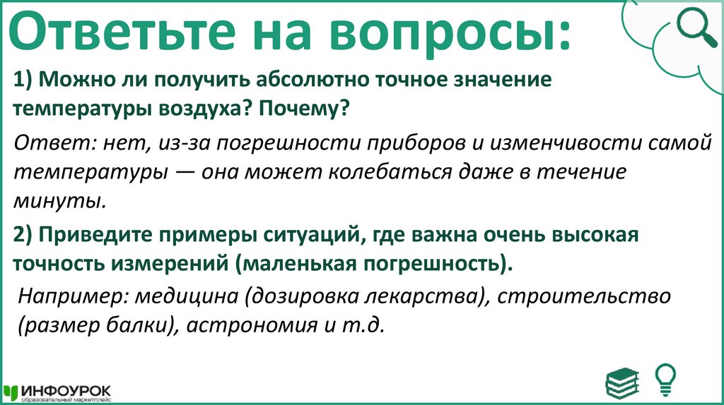 Ответьте на вопросы:1) Можно ли получить абсолютно точное значение