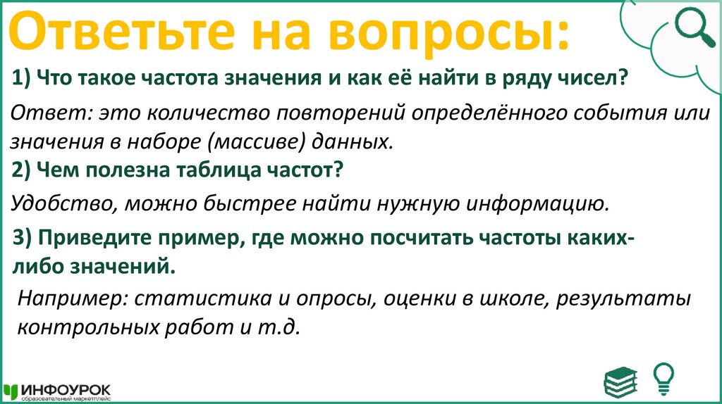 Ответьте на вопросы:1) Что такое частота значения и как её найти в ряду чисел?
