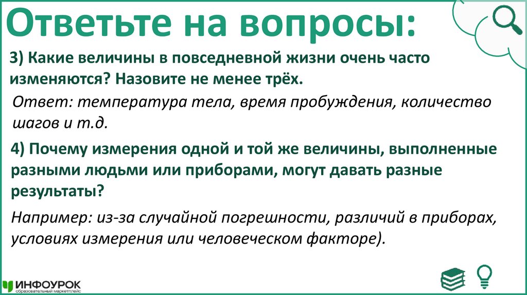 Ответьте на вопросы:3) Какие величины в повседневной жизни очень часто