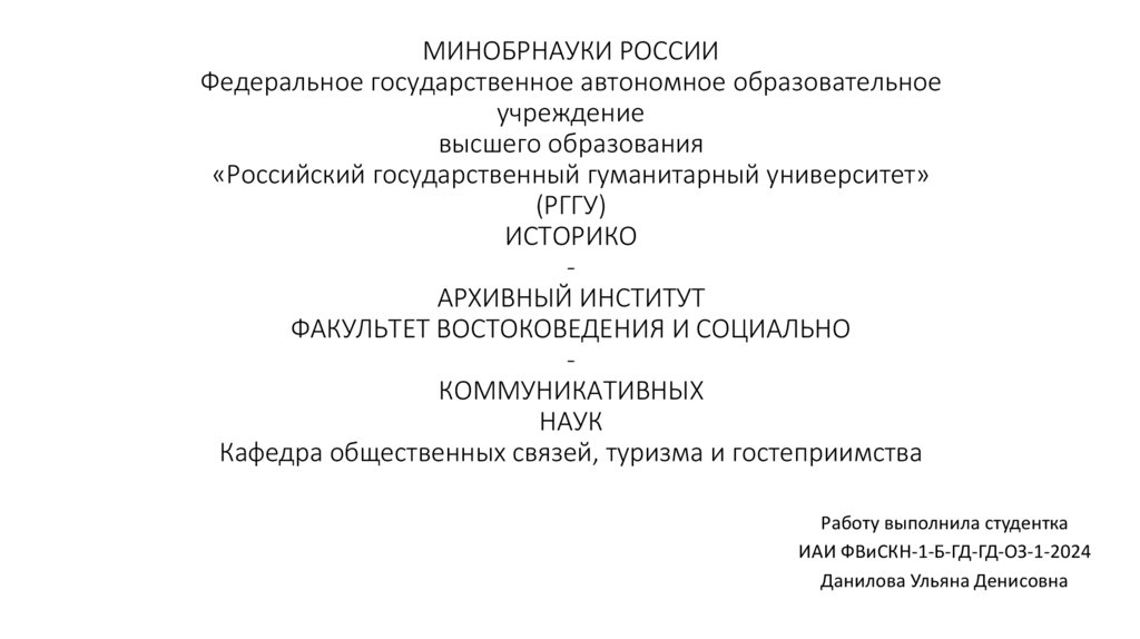 1. МИНОБРНАУКИ РОССИИ Федеральное государственное автономное образовательное учреждение высшего образования «Российский
