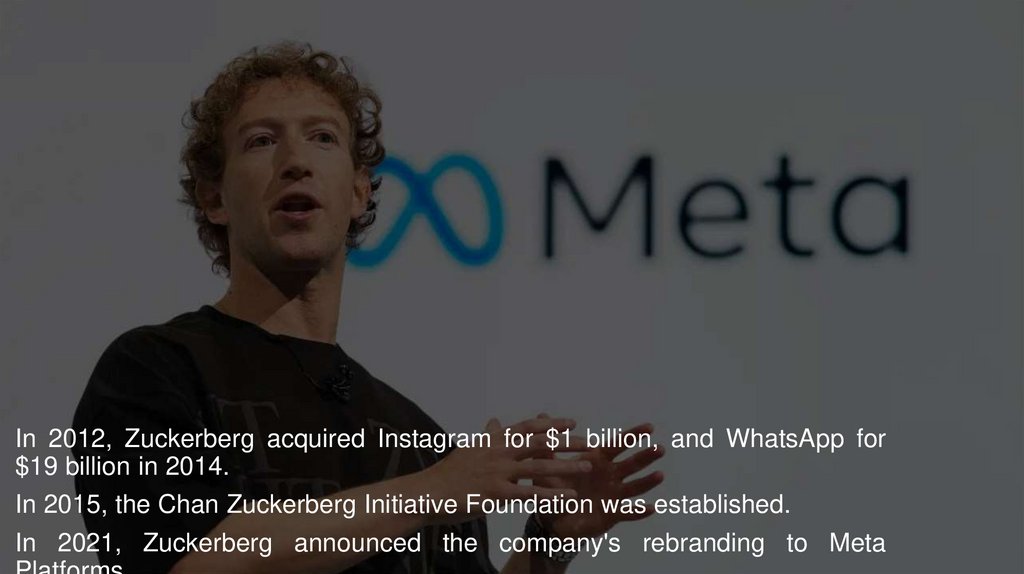 In 2021, Zuckerberg announced the company's rebranding to Meta