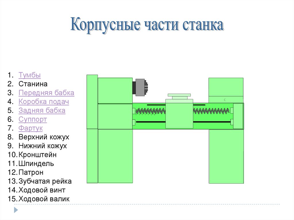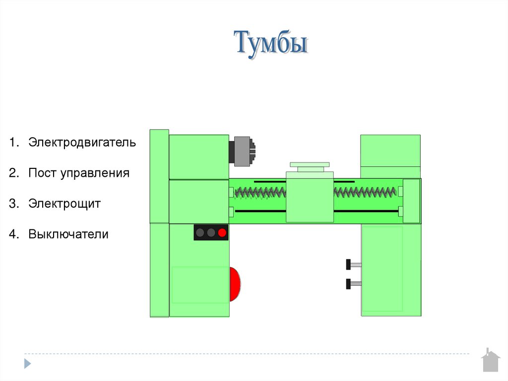 2. Покажите расположение частей станка, крепящихся к тумбам ТВС (слайд 4)