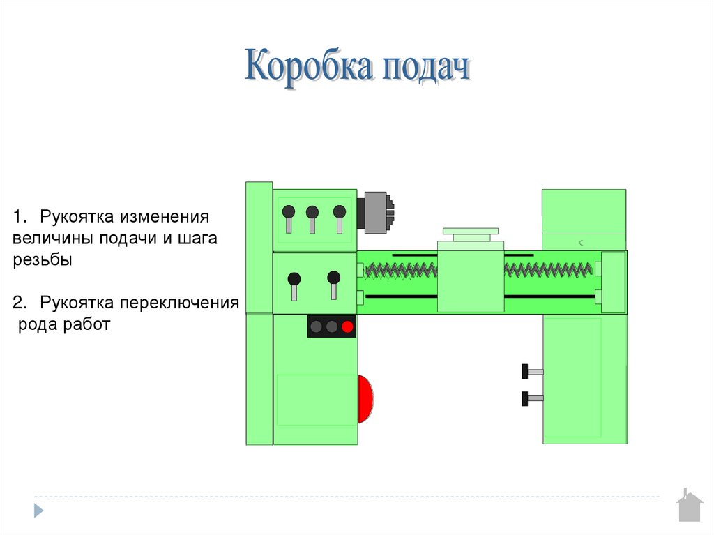 4. Покажите расположение органов управления коробкой подач ТВС (слайд 6)