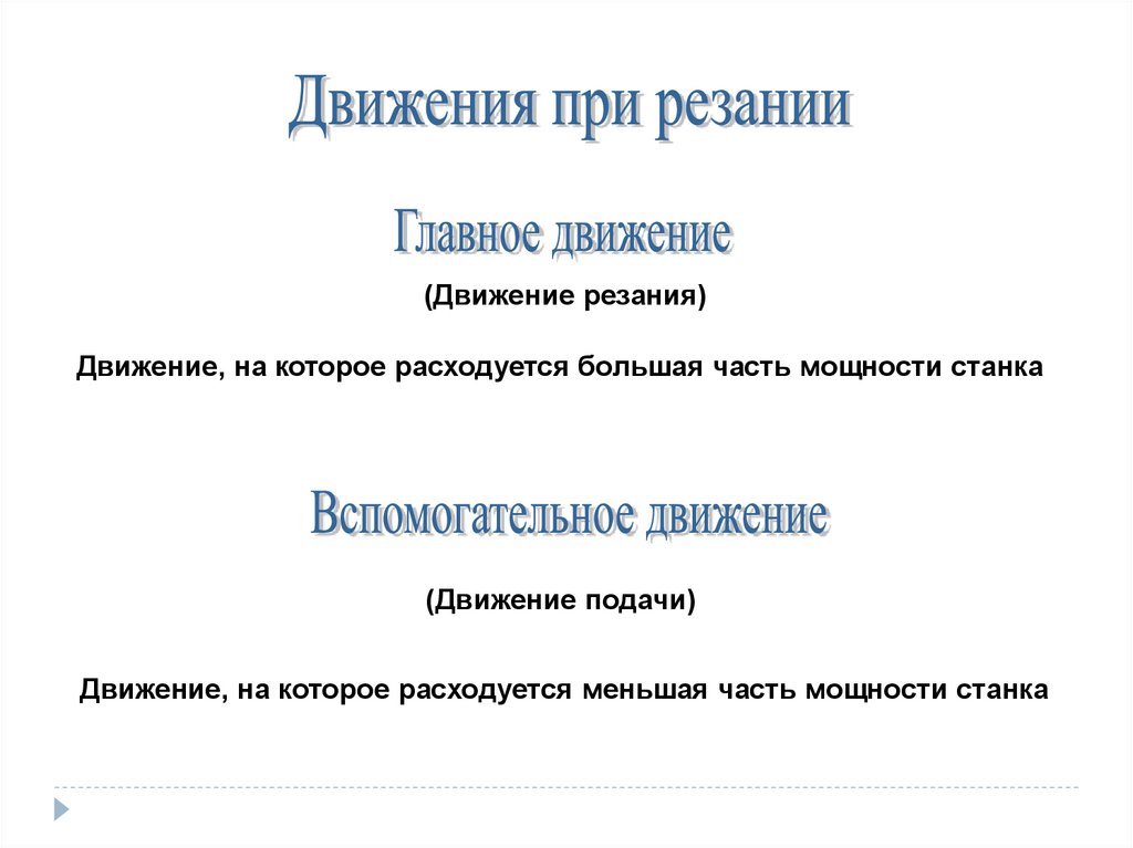 (Движение резания)Движение, на которое расходуется большая часть мощности станка