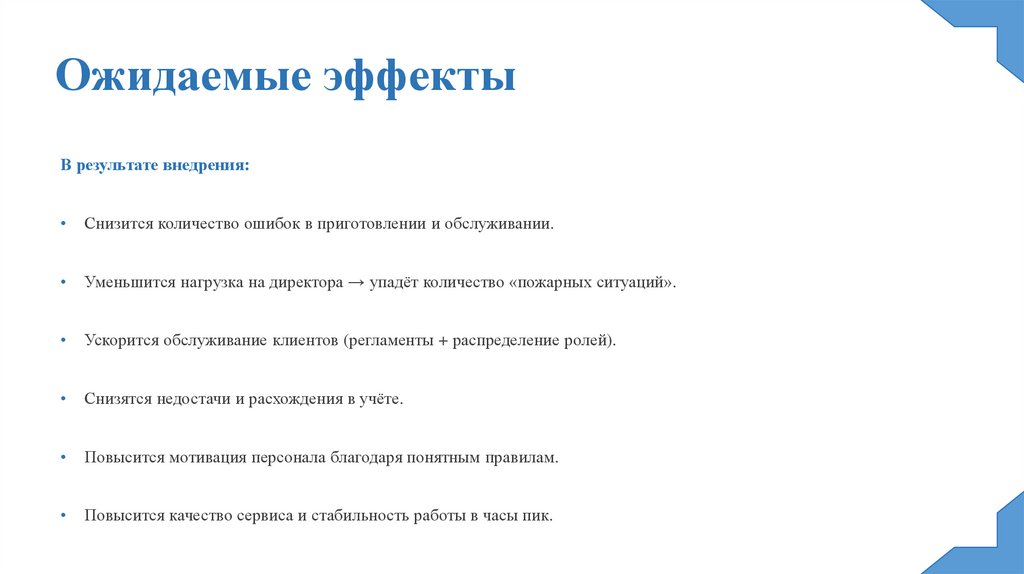 Предложенные меры учитывают специфику fast-food бизнеса.