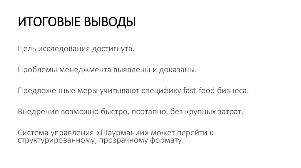 ИТОГОВЫЕ ВЫВОДЫЦель исследования достигнута.