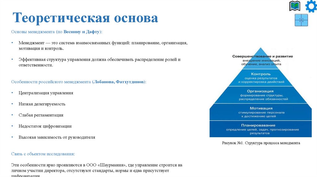 Теоретическая основаОсновы менеджмента (по Веснину и Дафту):