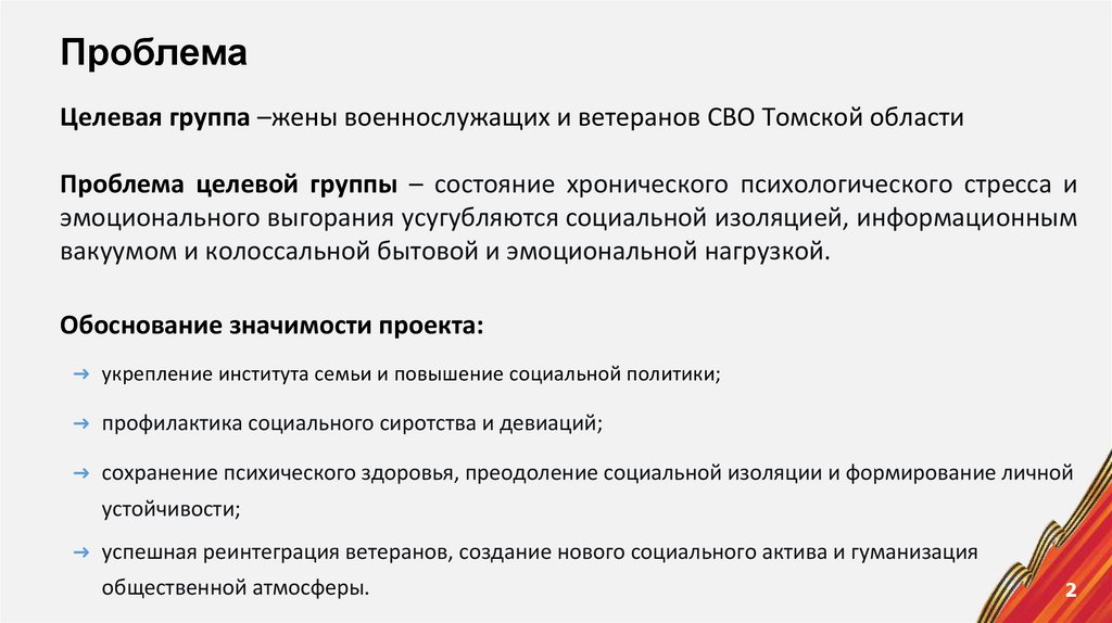 ПроблемаЦелевая группа –жены военнослужащих и ветеранов СВО Томской области