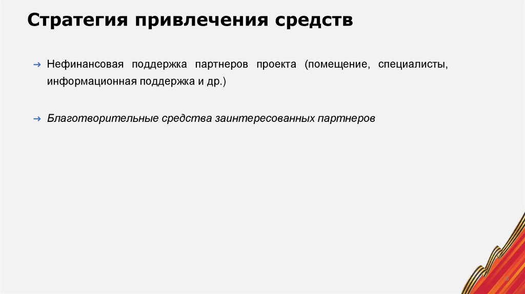 Стратегия привлечения средств➜ Нефинансовая