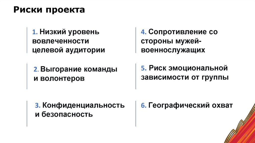 Риски проекта1. Низкий уровень