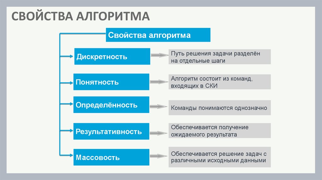 Алгоритм - это предназначенное для конкретного исполнителяописание последовательности действий, приводящих от исходных
