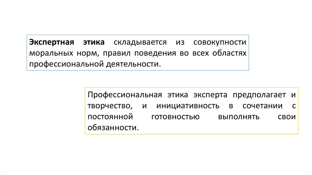 Экспертная этика складывается из совокупностиморальных норм, правил поведения во всех областях