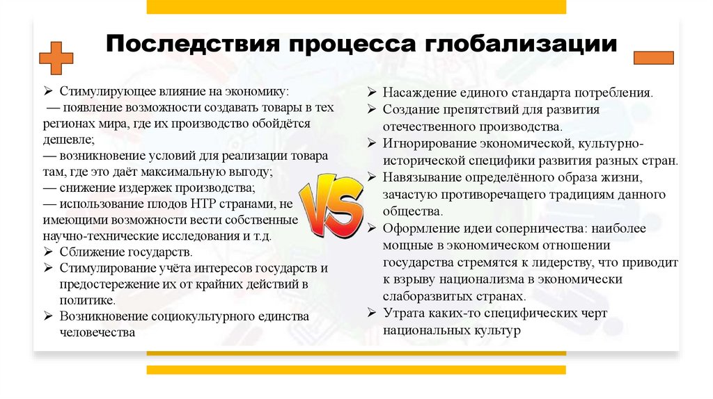 Последствия процесса глобализацииСтимулирующее влияние на экономику: