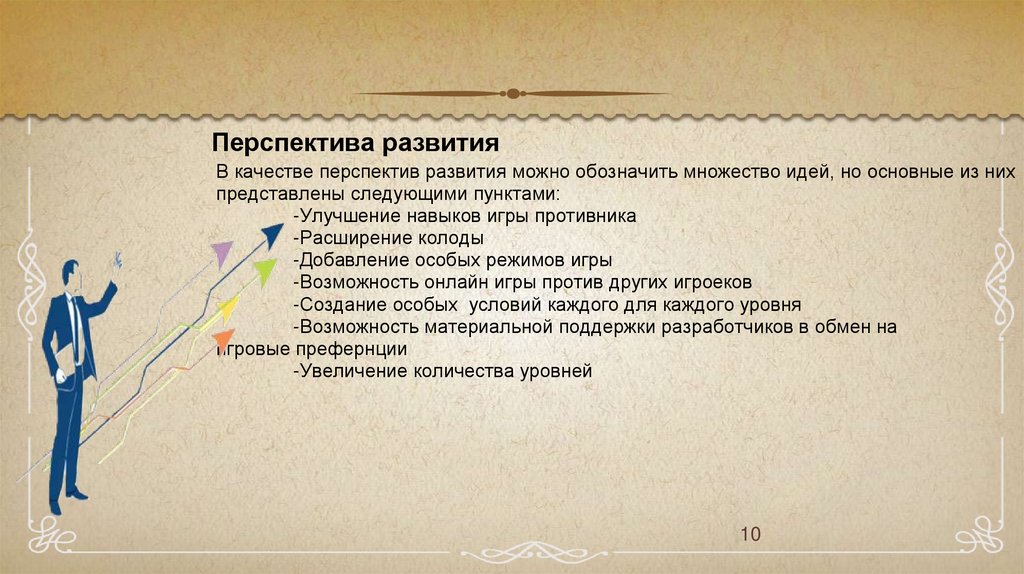Перспектива развитияВ качестве перспектив развития можно обозначить множество идей, но основные из них