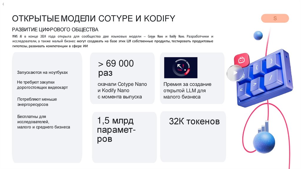 MWS AI в конце 2024 года открыла для сообщества две языковых модели – Cotype Nano и Kodify Nano. Разработчики и