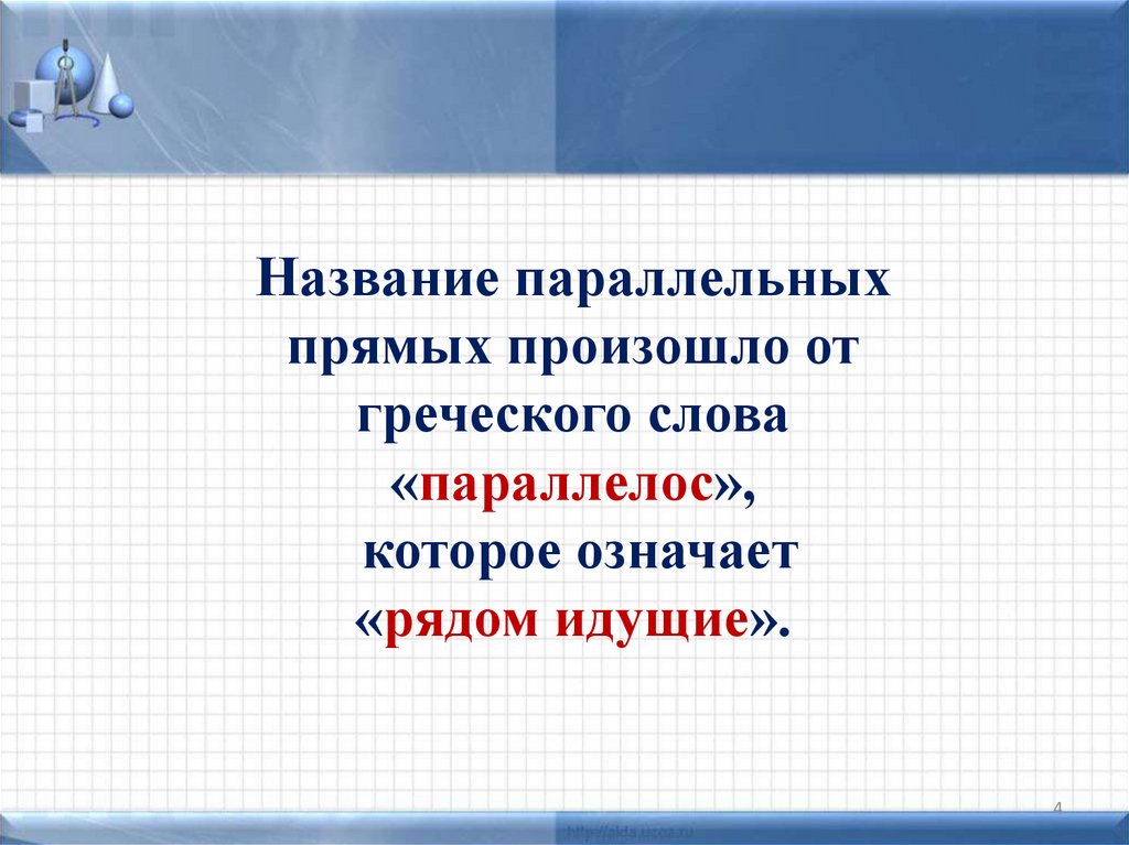 Название параллельныхпрямых произошло от