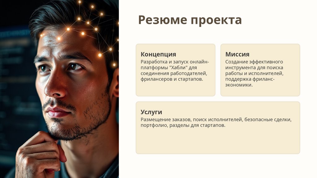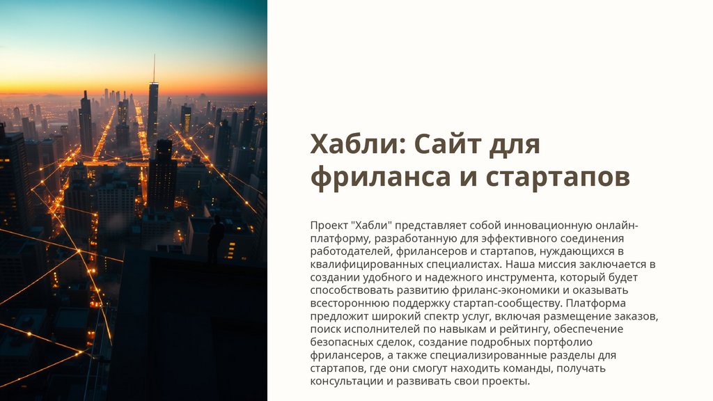 Проект "Хабли" представляет собой инновационную онлайнплатформу, разработанную для эффективного соединения