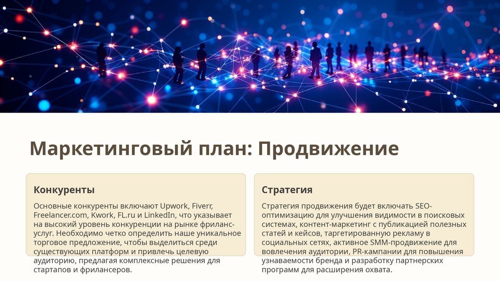 Высокая конкуренция со стороны существующих фрилансбирж и специализированных платформ требует постоянного