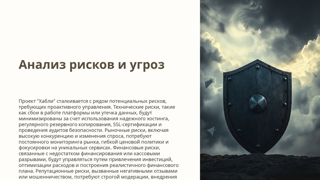 Анализ рисков и угрозПроект "Хабли" сталкивается с рядом потенциальных рисков,