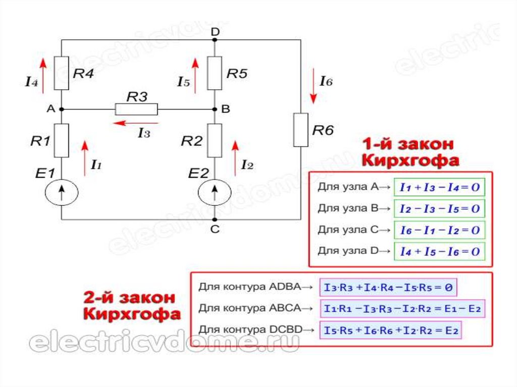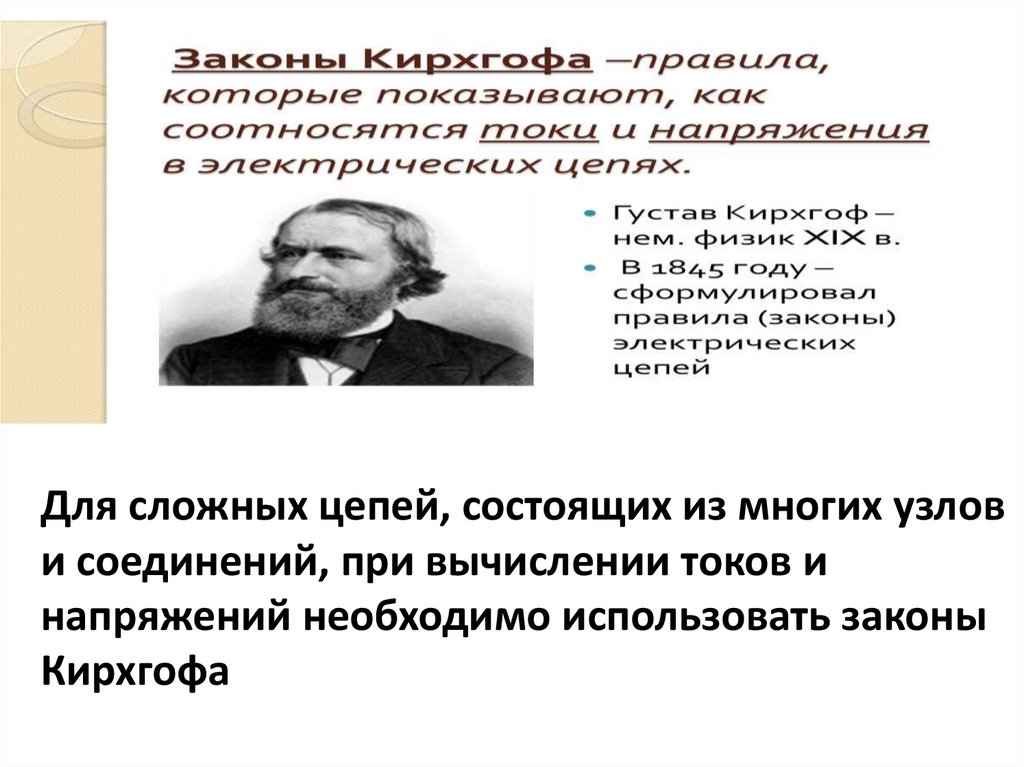 Для сложных цепей, состоящих из многих узлови соединений, при вычислении токов и
