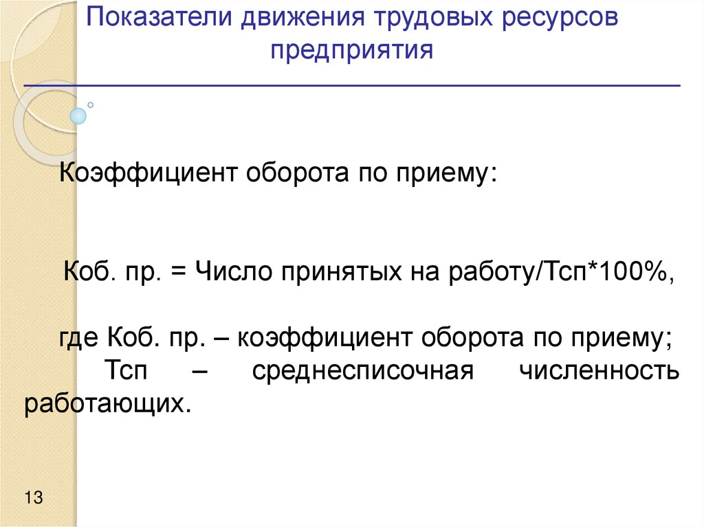 Коб. пр. = Число принятых на работу/Тсп*100%,