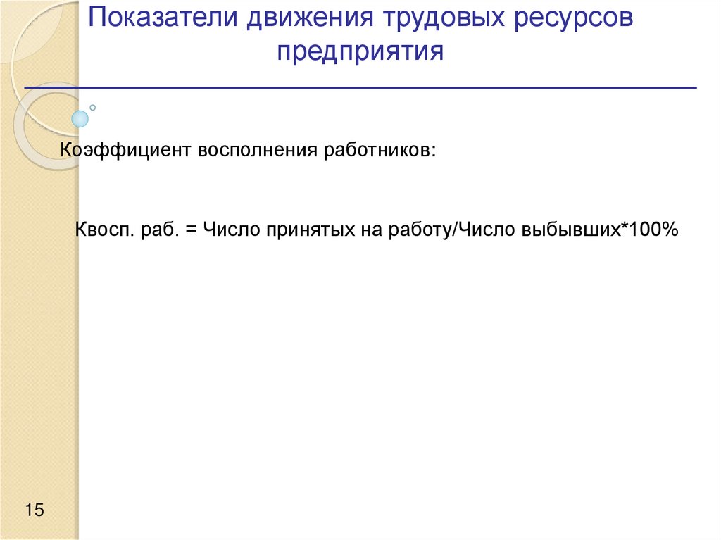 Квосп. раб. = Число принятых на работу/Число выбывших*100%