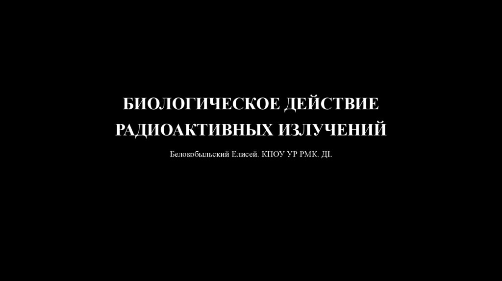 БИОЛОГИЧЕСКОЕ ДЕЙСТВИЕРАДИОАКТИВНЫХ ИЗЛУЧЕНИЙ