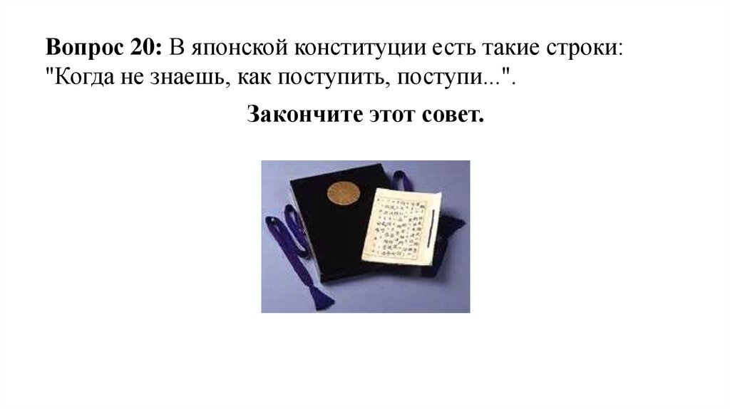 Вопрос 20: В японской конституции есть такие строки:"Когда не знаешь, как поступить, поступи...".