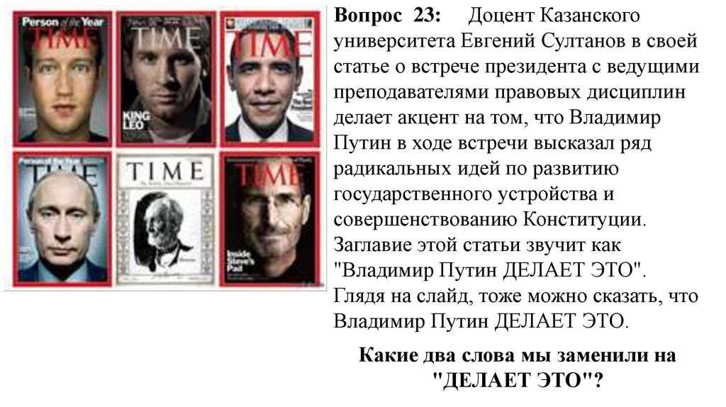 Вопрос 23: Доцент Казанскогоуниверситета Евгений Султанов в своей