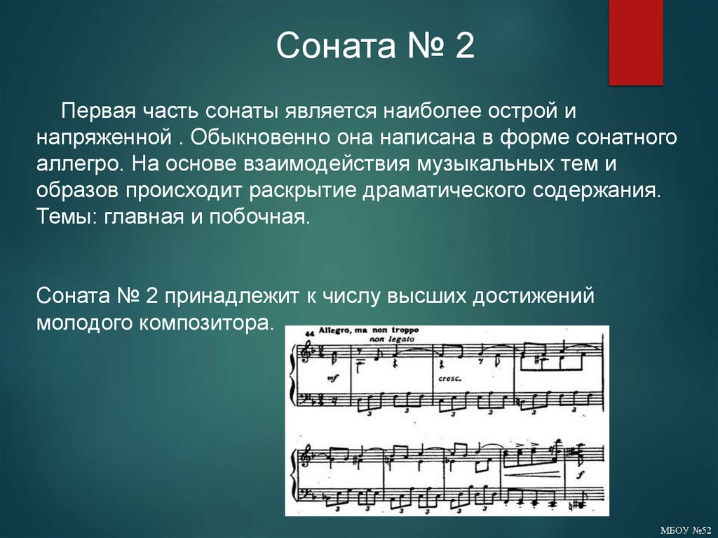 Соната № 2Первая часть сонаты является наиболее острой и