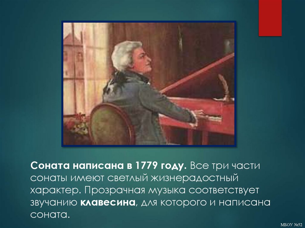 Соната написана в 1779 году. Все три частисонаты имеют светлый жизнерадостный