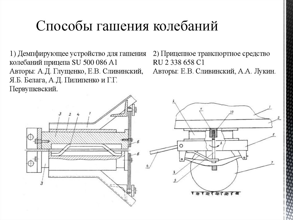 Способы гашения колебаний1) Демпфирующее устройство для гашения 2) Прицепное транспортное средство