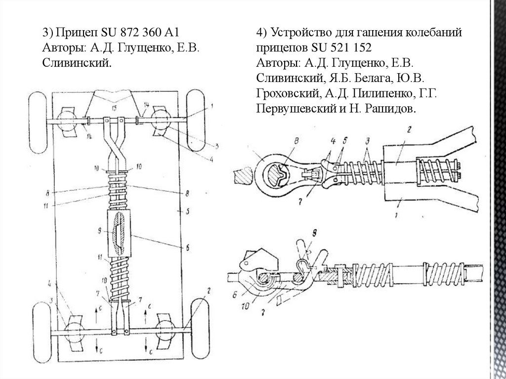 3) Прицеп SU 872 360 А1Авторы: А.Д. Глущенко, Е.В.