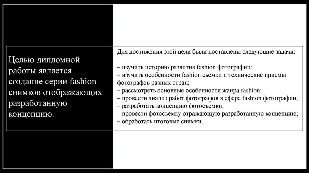 – провести анализ работ фотографов в сфере fashion фотографии;