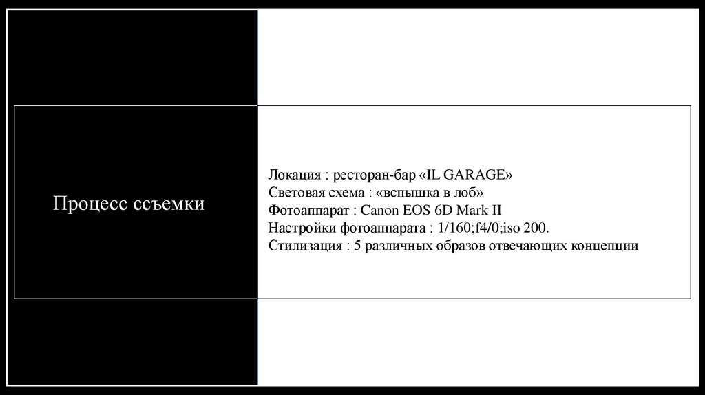 Процесс ссъемкиЛокация : ресторан-бар «IL GARAGE»